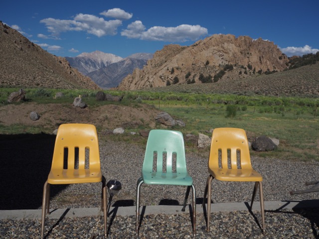 In the case of our 9000 Series, the answer might be yes. Last summer, my wife and I were at a birthday party in California’s eastern Sierra. The caterer had acquired some Virco 9000’s from a local school where the chairs had been in service for over 40 years. Recognizing the colors as being quite old, I lined up these three for a portrait with Montgomery Peak in the background.