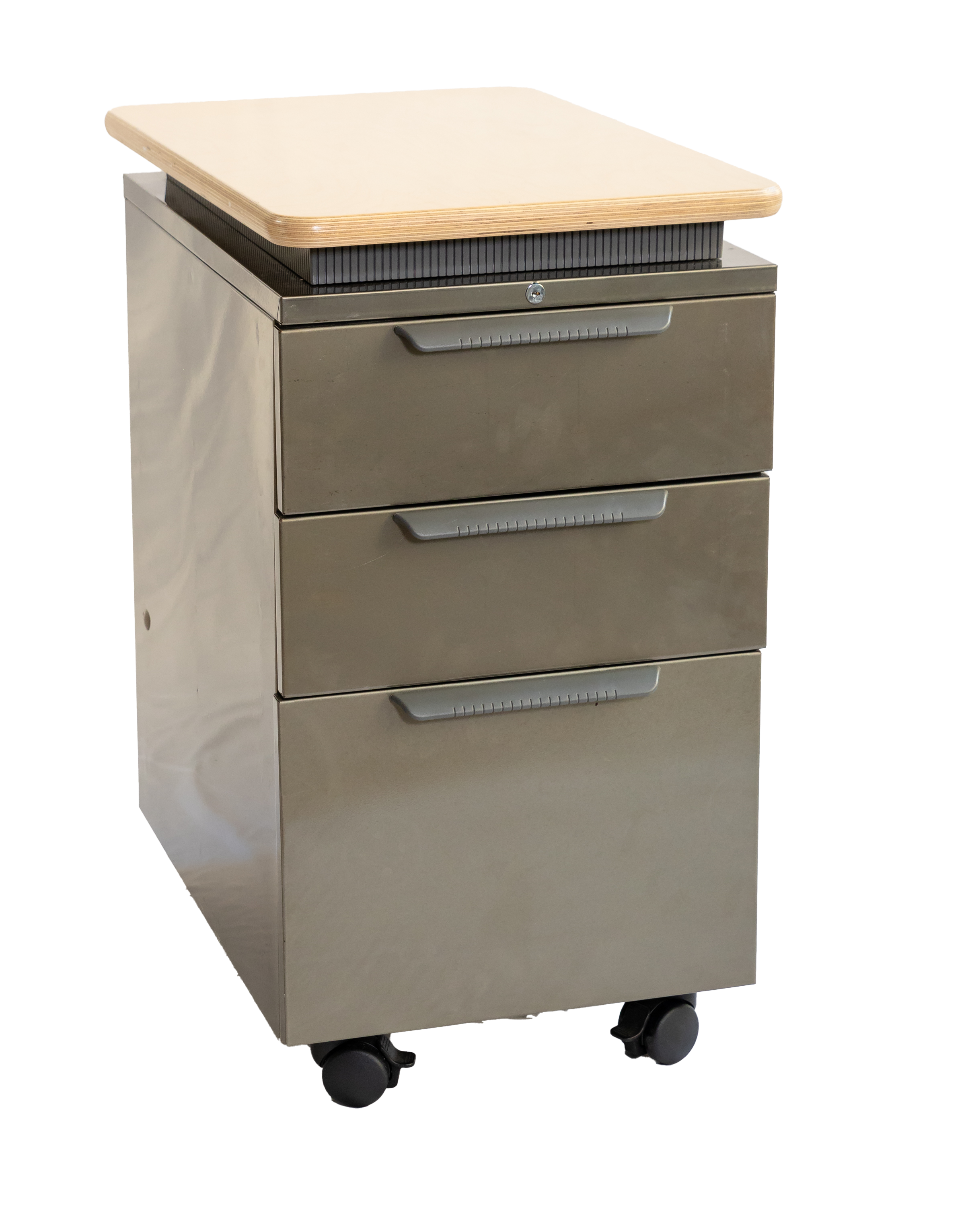 With its elegant floating top, this commercial grade heavy-duty mobile pedestal is built to last a lifetime. It can be matched with the Plateau family of desks or serve as a stand alone piece. The locking file drawer is the perfect size for the those important home documents. Unlike steel only filing cabinets, this piece can also serve as an extra side table or workspace extender 24 inch x 16 inch top.