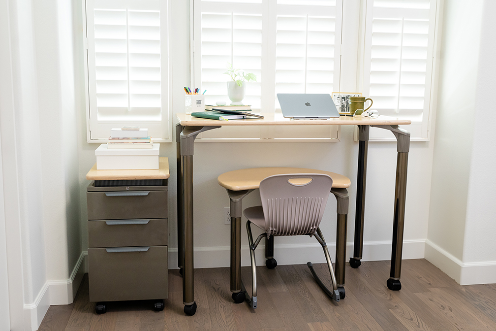 Nesting perfectly below the stand-up desk, the 22″ x 24″ standard size desk is perfect for working on your laptop.