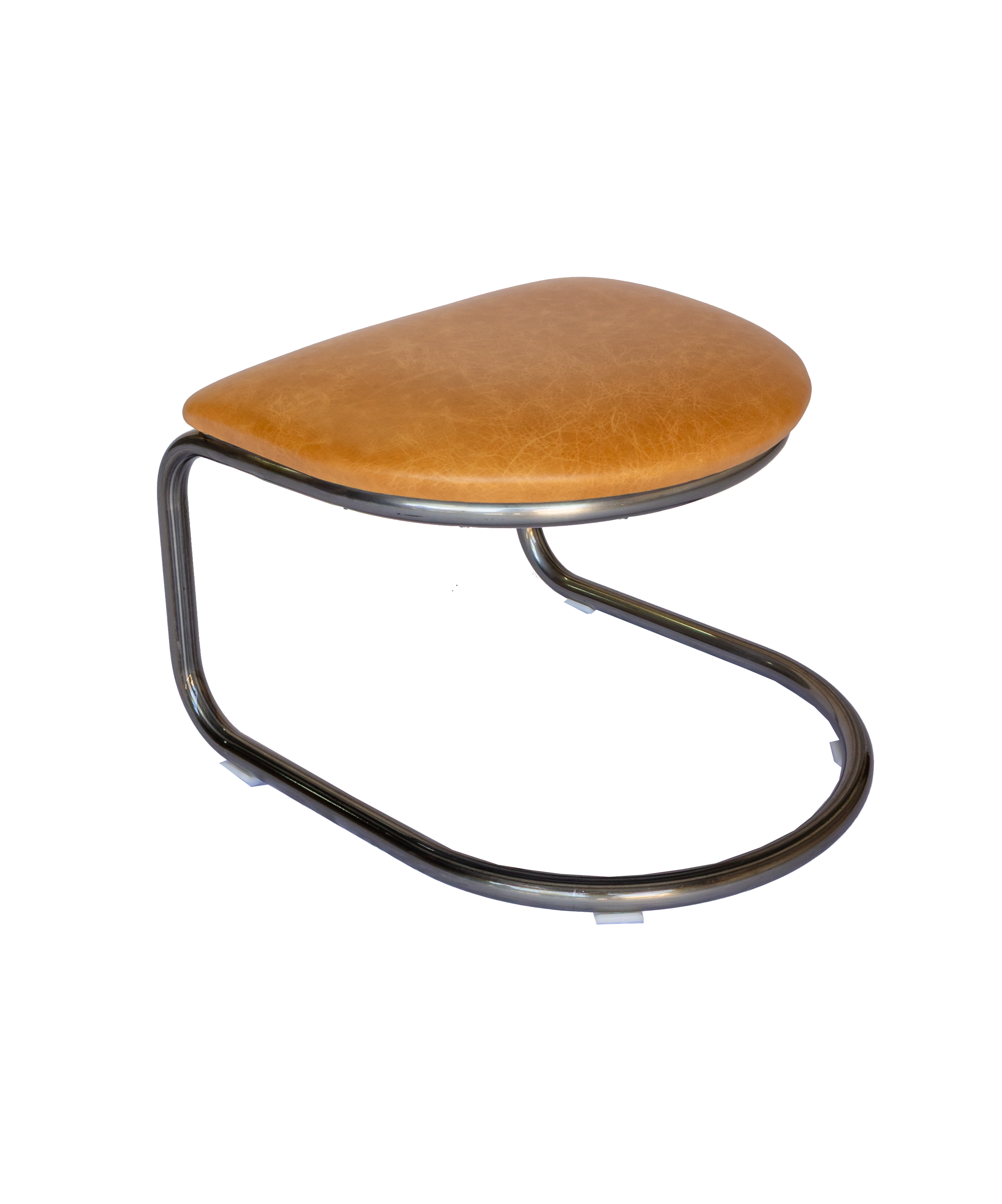 A new addition to the classic Lorren Chair, this ottoman lets you lean back and put your feet up. And when you don’t want to stretch out, the ottoman nests beautifully under your Lorren Chair. Built with the same heavy duty steel and durable genuine leather as the Lorren Chair, this ottoman is deigned to last a lifetime. Available in three leathers: Cafe’, Brown-Olive, or Light Honey: with two frame finish options: Chrome or natural steel.